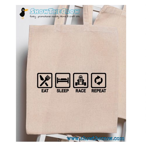 “Eat Sleep Race Repeat” Motorsport Racing Karting 100% Premium Cotton Tote Gift Shoppers Bag