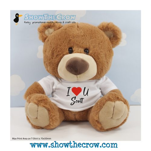 “Personalised – I Love U” 25cm Caramel Charlton Bear Gift Keepsake Memory Bear Love Valentines Heart