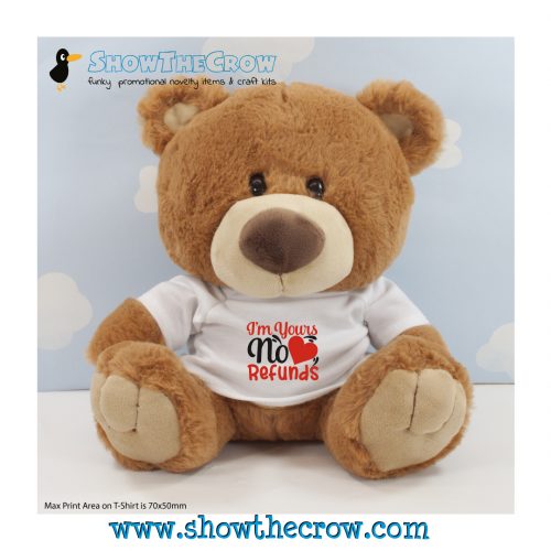 “I’m Yours No Refunds” 25cm Caramel Charlton Bear Gift Keepsake Memory Bear Love Valentines Heart