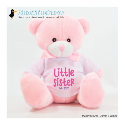 ‘Little Sister Est 2026’ 20cm Pink Nursery Baby Bear with Text Gift Keepsake Memory Bear Birthday
