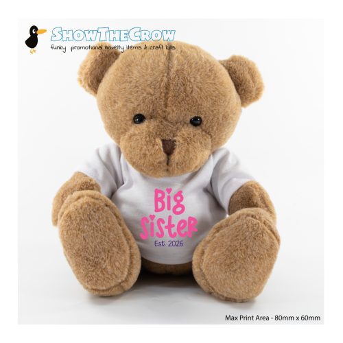 ‘Big Sister Est 2026‘ 25cm Lando Bear with Text Gift Keepsake Memory Bear Birthday