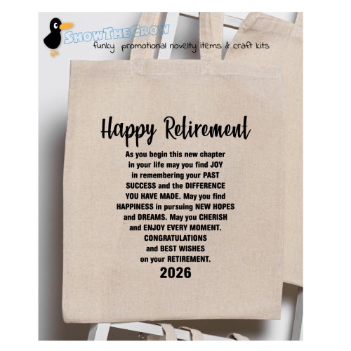 “Happy Retirement 2026” 100% Premium Cotton Tote Gift Shoppers Bag Retirement Present Gift