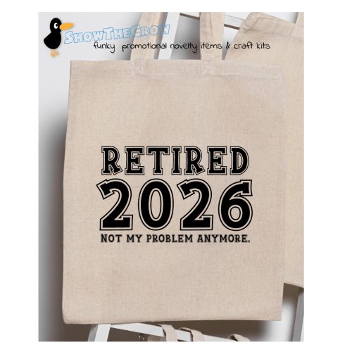 “Retired 2026 – Not My Problem” 100% Premium Cotton Tote Gift Shoppers Bag Retirement Present Gift