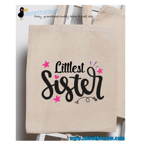 “Littlest Sister” Sister Sibling Family100% Premium Cotton Tote Gift Shoppers Bag