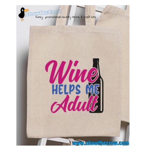 “Wine Helps Me Adult” 100% Premium Cotton Tote Gift Shoppers Bag Adult Wine Bag