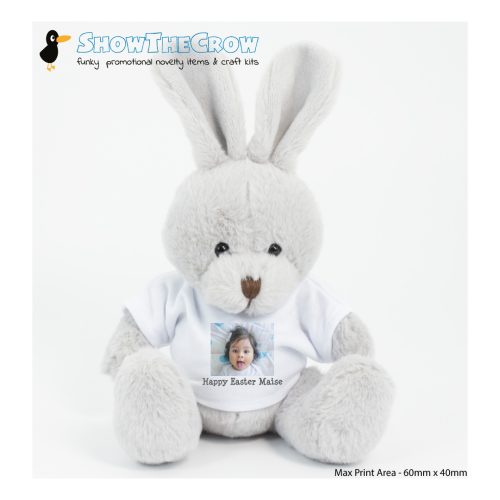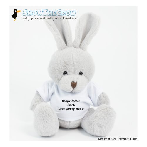 15cm Grey Bunny Rabbit With T-Shirt and Personalised Print, Gift Keepsake Memory Bear Easter