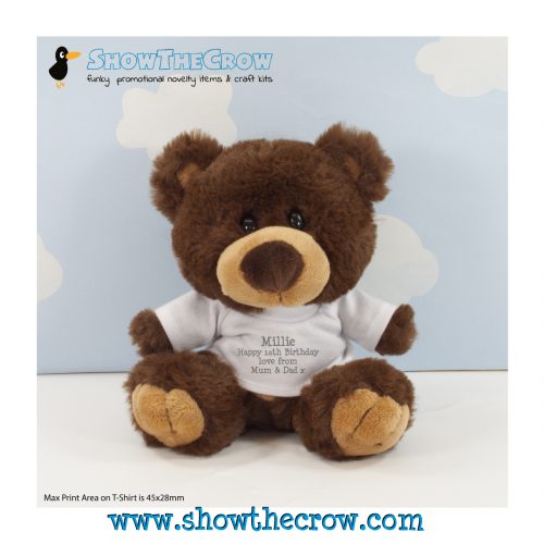 25cm Personalised Chocolate Charlton Bear with Text, Gift, Keepsake, Memory Bear, Birthday