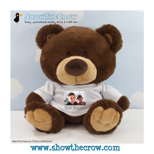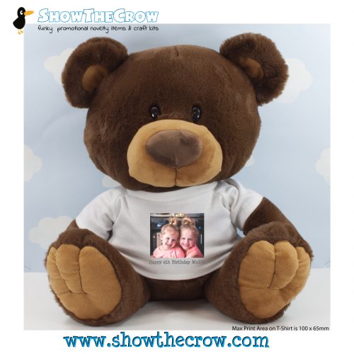 35cm Personalised Chocolate Charlton Bear with Photo & Text, Gift, Keepsake, Memory Bear, Birthday