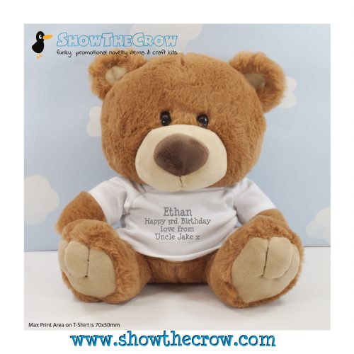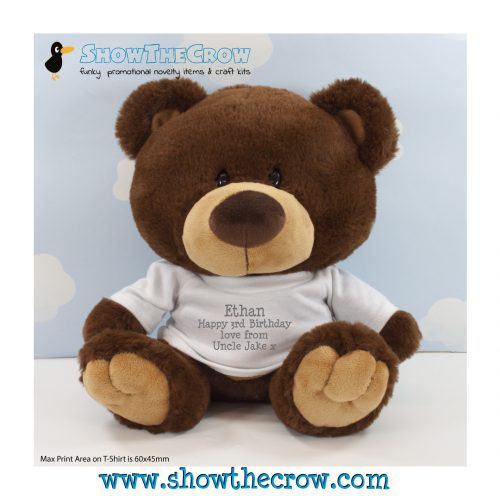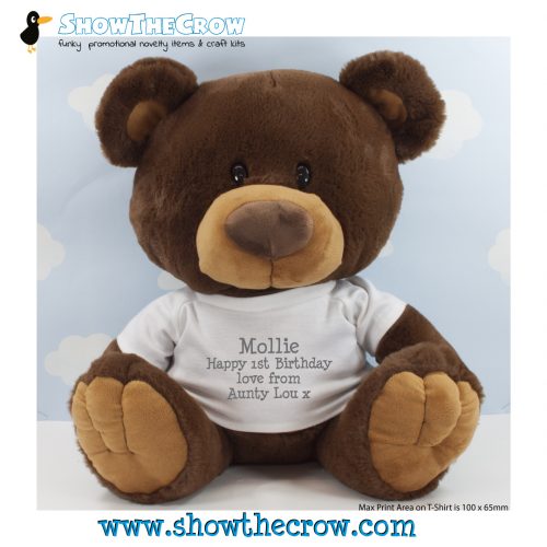 35cm Personalised Chocolate Charlton Bear with Text, Gift, Keepsake, Memory Bear, Birthday