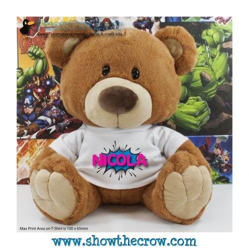 35cm Personalised Caramel Charlton Bear with Name, Boys Superhero, Comic, Gift, Memory Bear, Birthday