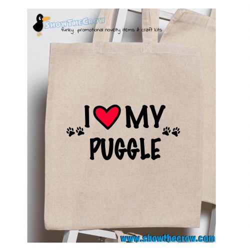 “I Love My Puggle” 100% Premium Cotton Tote Gift Shoppers Bag